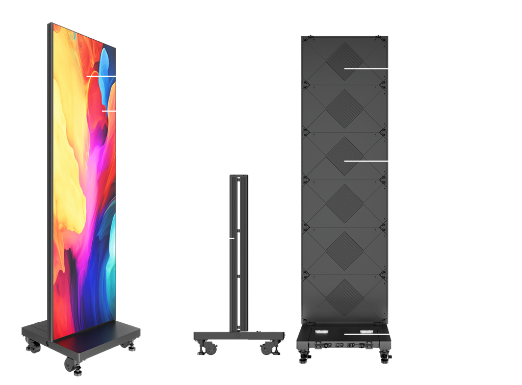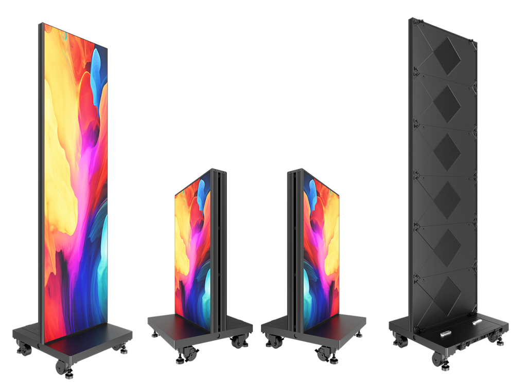 ViuPost XIP offers an IP-rated design that incorporates a Wind Level 8 resistant, heavy-duty rolling base. A built-in, WiFi app controllable media player with USB and HDMI input provides easy content playback without external processing that is fully sealed within the base with weatherproof connections. All are designed to deliver remarkable performance, endurance, and flexibility for temporary outdoor signage applications.